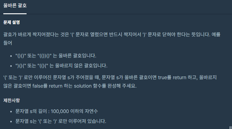 출처: https://programmers.co.kr/learn/courses/30/lessons/12909