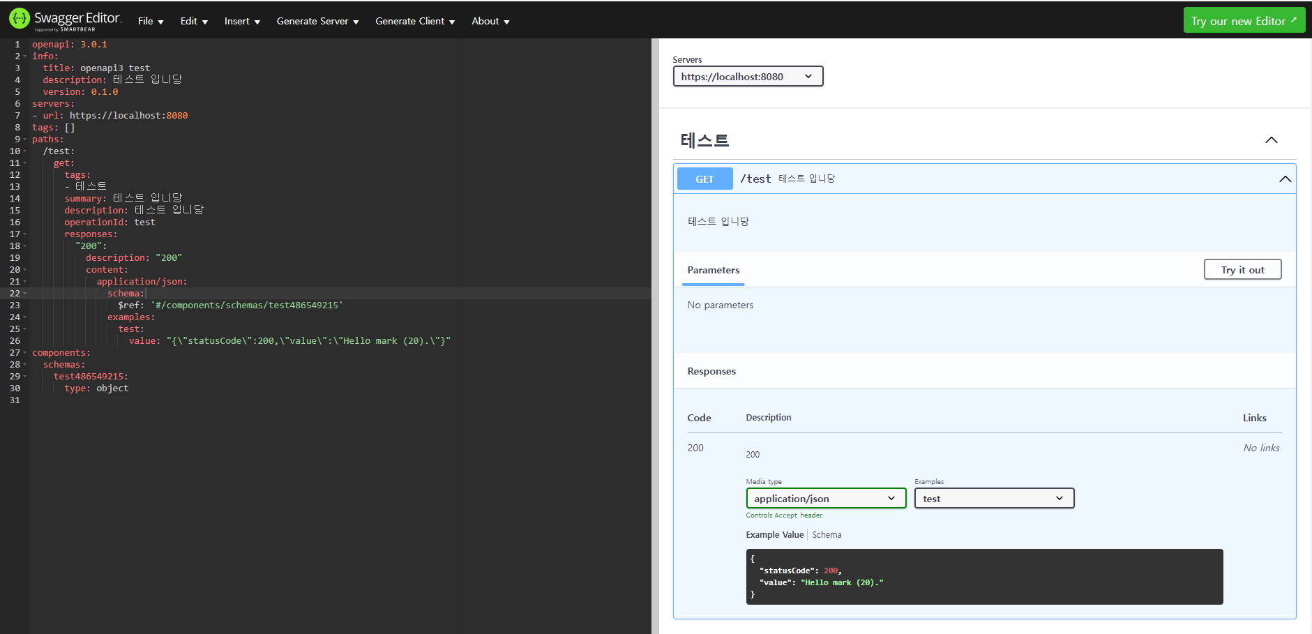 - 테스트코드를 작성한 후, openapi3 를 실행한다.